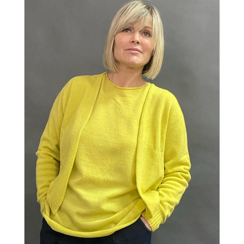 Цей класичний жакет круглої в'язки без швів з боків, (пов'язаний трубою), що свідчить про найвищу якість, має круглий комір із закрученими краями та дуже м'який кашеміровий комфорт.