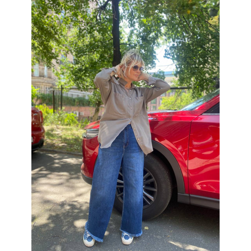 Джинси палацо зі щільної тканини з необроблениим подолом.