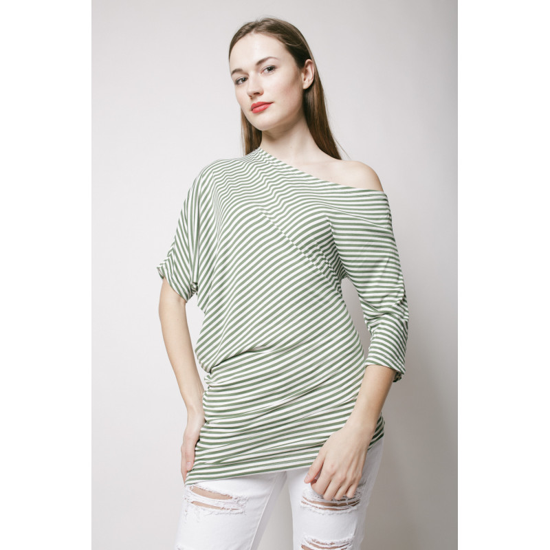 Футболка у смужку асиметричного крою з рукавом 3\4