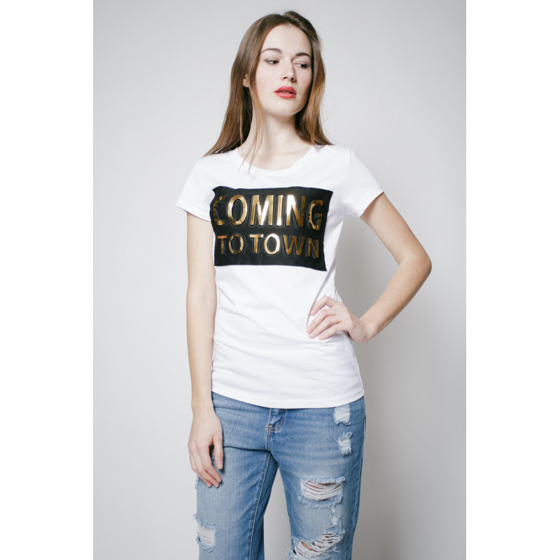 БАВОВНЯНА ФУТБОЛКА з короткими рукавами та аплікацією "coming to town"
