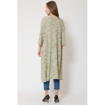 Кардиган вільного, розширеного донизу силуету, без застібок, з суцільнокроєними широкими рукавами 3\4, кишенями в бічних швах