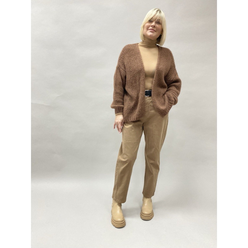 В’ЯЗАНИЙ КАРДИГАН вважається фаворитом сезону, саме в’язаний великою в’язкою з гудзиками або без як цей. Чим ширший і більший він, тим краще. Одягати з поясом чи пояском, без чи із шпилькою, на топ чи гольф як цей – все одно. Головне об’єм та колір.