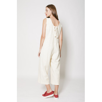 Комбінезон із фактурного триктажу з люрексом, заниженою лінією талії, декоративними клапанами та вирізом на спинці, декорованим бантом
