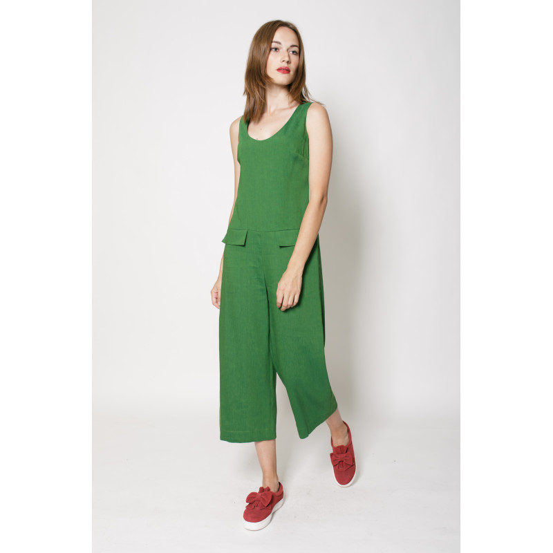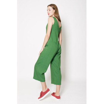 Комбінезон із льону з еластаном, заниженою лінією талії, декоративними клапанами та вирізом на спинці, із застібкою, "блискавка" на спинці