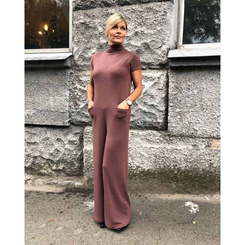 Комбінезон з вовни на короткий рукав, відрізний по лінії талії та кишенями у бокових швах