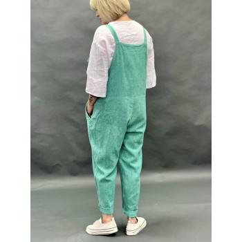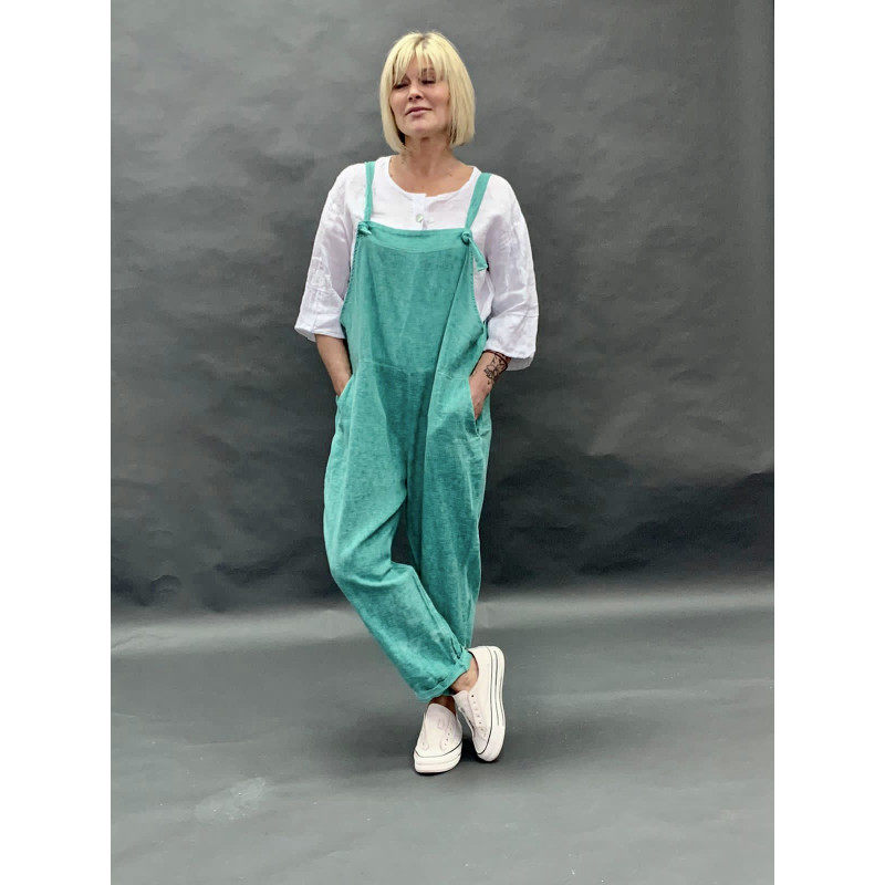 Дуже привабливий льняний комбінезон з великими кишенями та широкими штанинами відрізний трохи нижче по талії