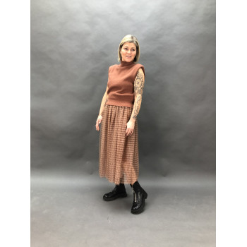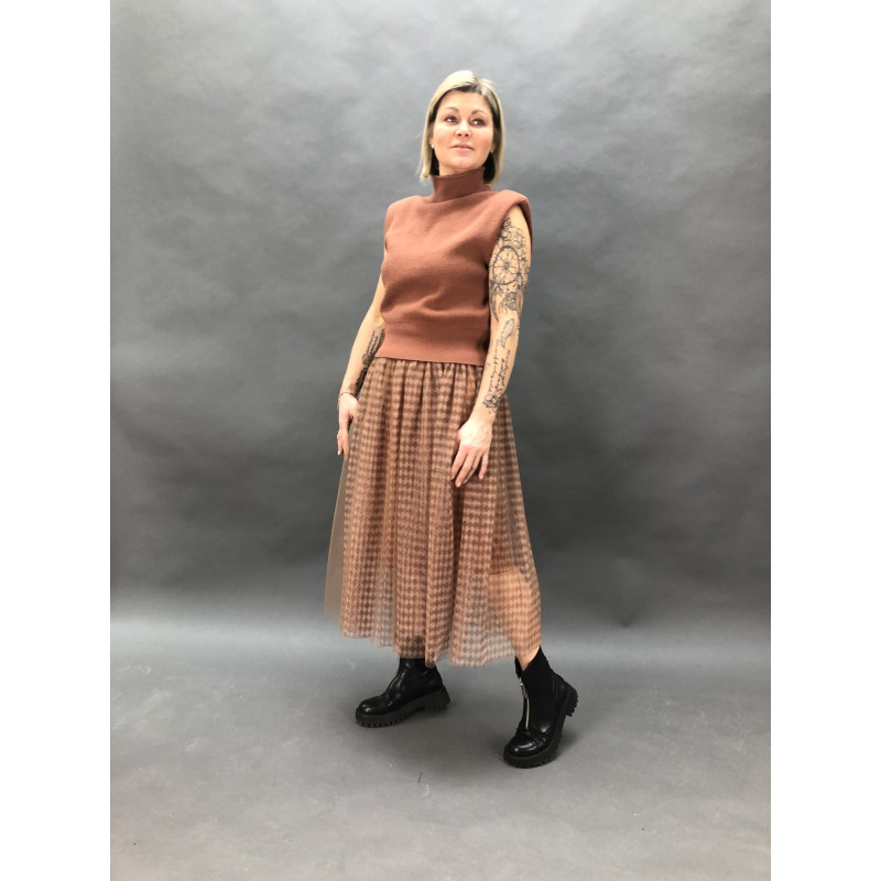 Костюм двійка - в'язаний светр без рукавів з модними підплічниками, низ-повітряна спідниця з фатину в дрібну клітку з резинкою поясом і на підкладці