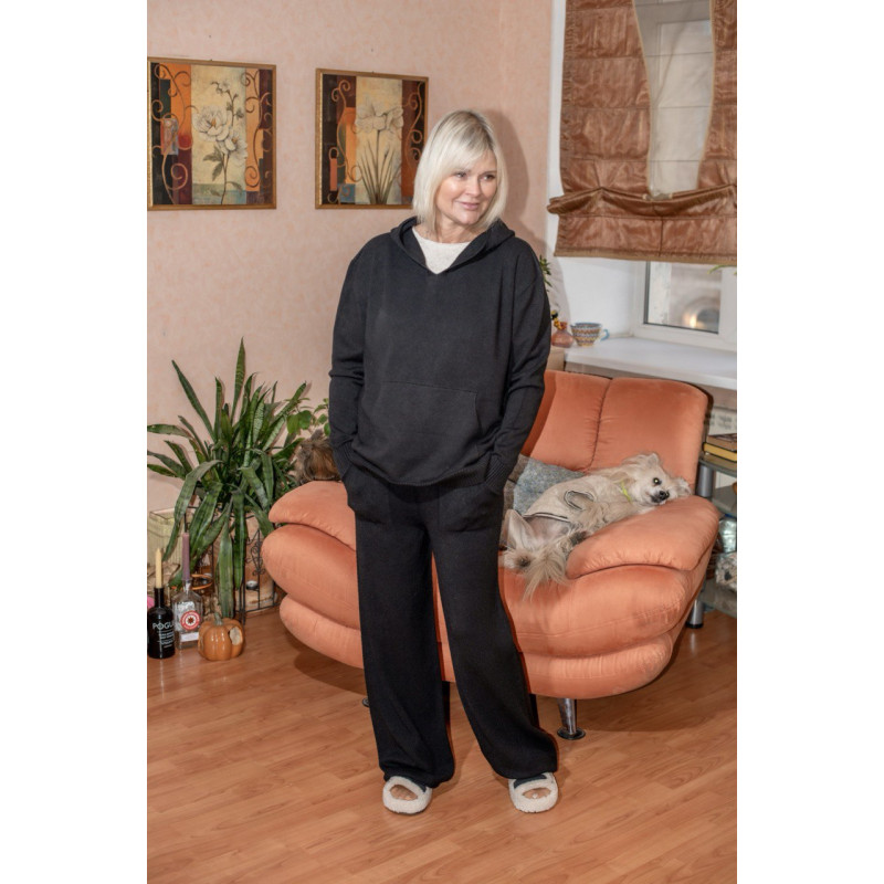 Спортивний стиль - це найвище досягнення моди за останні роки. Це тренд який увійшов міцно та на довго у моду.В"язаний подовжений светер з капюшоном і кишенями кенгугу і довгі прямі штани з в"язаним манжетом поясом зі шнурком