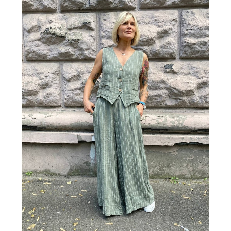 Брюки палаццо в білу смужку з косими кишенями і гумкою в поясі