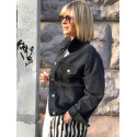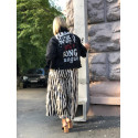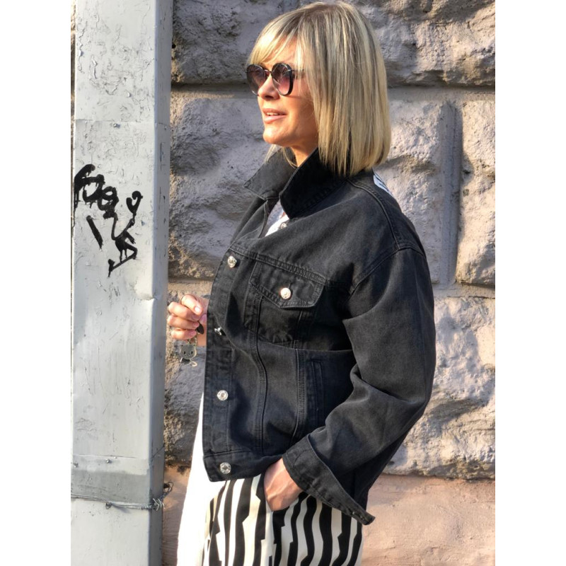 Класична джинсова куртка з традиційними кишенями та кнопками. З яскравим кольоровим трендовим принтом на спинці