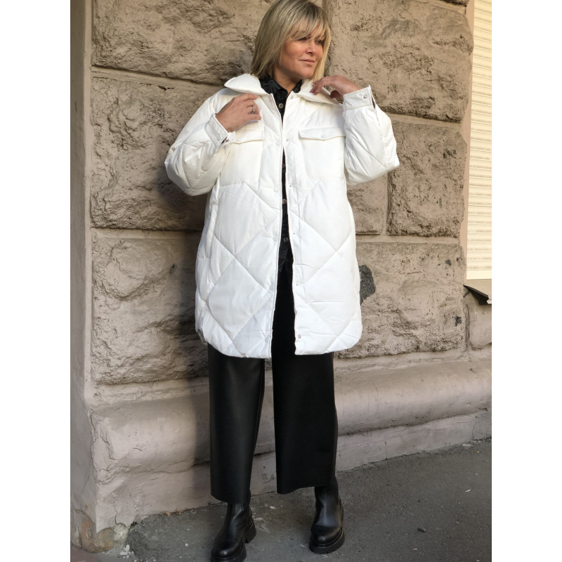 Стьобана куртка-сорочка з накладними кишенями та кишенями у швах, із закругленим подолом та застібкою на кнопках. наповнювач синтепон, на холод -5