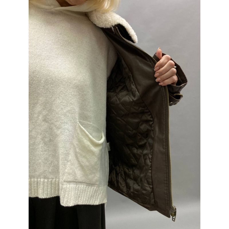Куртка з еко-шкіри на блискавці з хутряним коміром та кишенями .