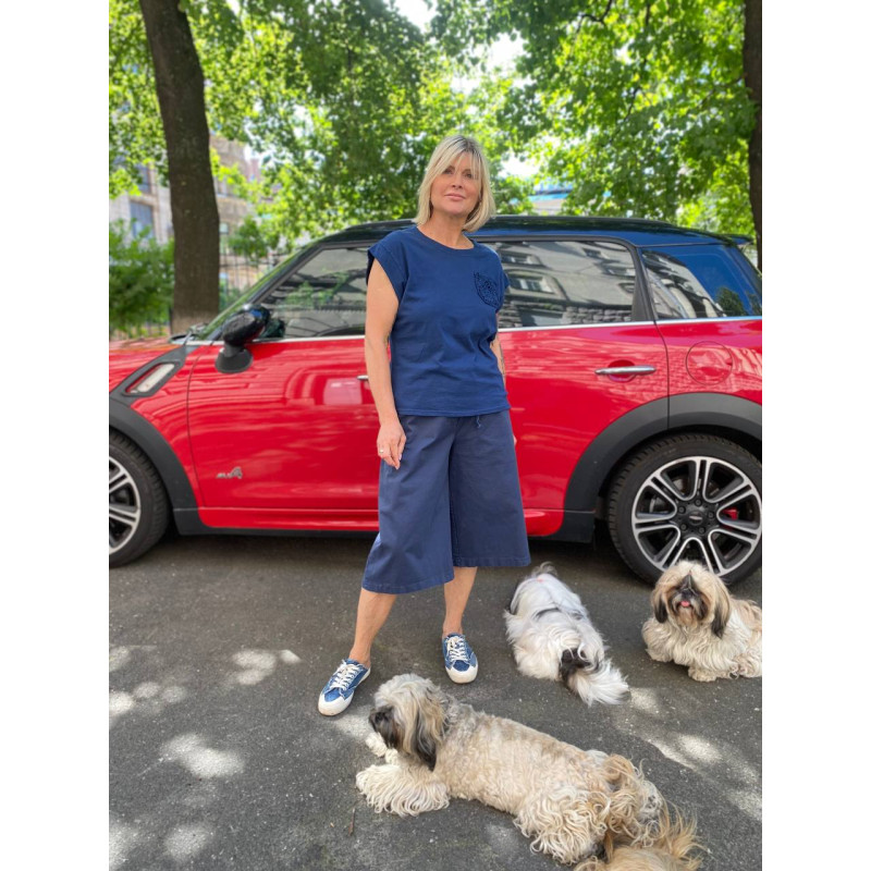 Спідниця-брюки з щільного котону. Пояс на гумці кишені у бічних швах та довжина ніде коліна - найкласичніша модель такої спідниці-брюк