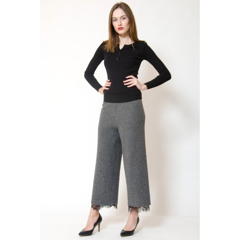 Штани-кюлоти з подолом, декорованим мереживом, з еластичним поясом на гумці, прямого силуету, доповнені підкладкою