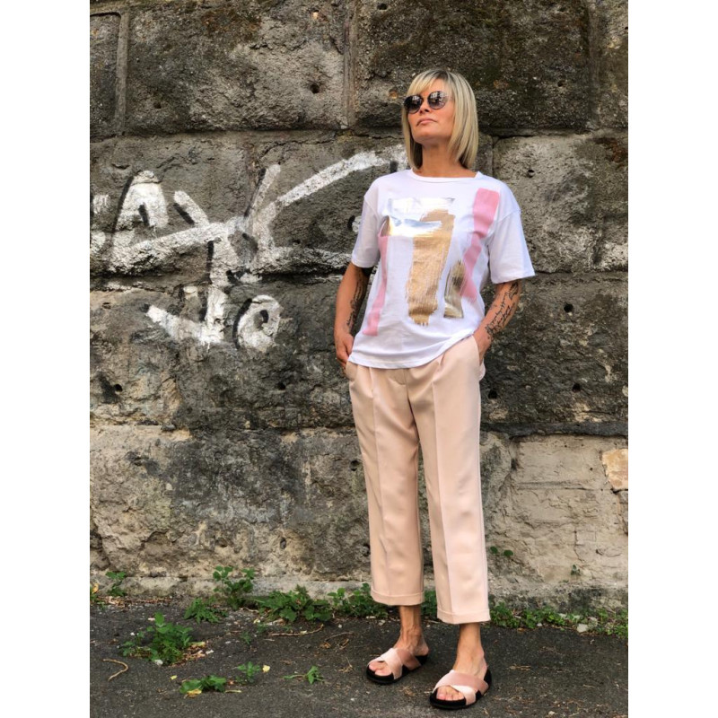 Штани-капрі з джерсі та м'яким поясом та косими кишенями.