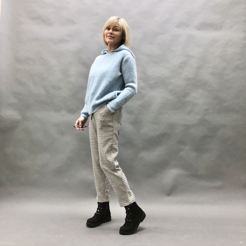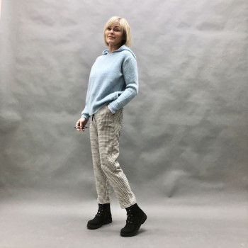 Штани з гумкою в поясі та декоративним шнурком, з косими кишенями з тканини та візерунком «гусячої лапки»