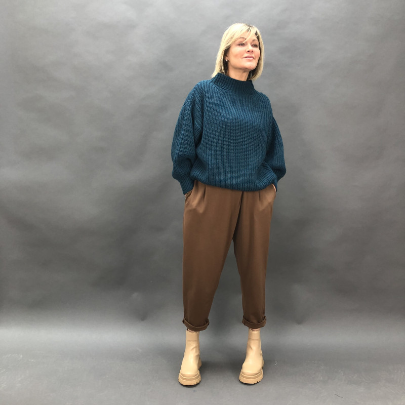 ШТАНИ з щільного джерсі - це чудова пара зі светром! Пояс з гумкою, спереду закладено запах під пояс, кишені - все зручно, просто і елегантно.