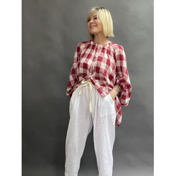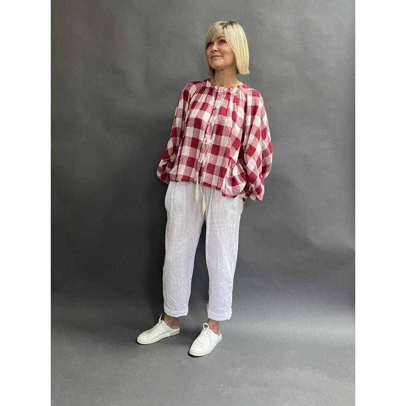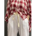 Легкі штани з льону на резинці з кремовим поясом. Котон 70% Льон 30%. Кишені - крій аристократа, довжина 92 см. Талія 72-110 см, стегна до 140 см
