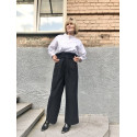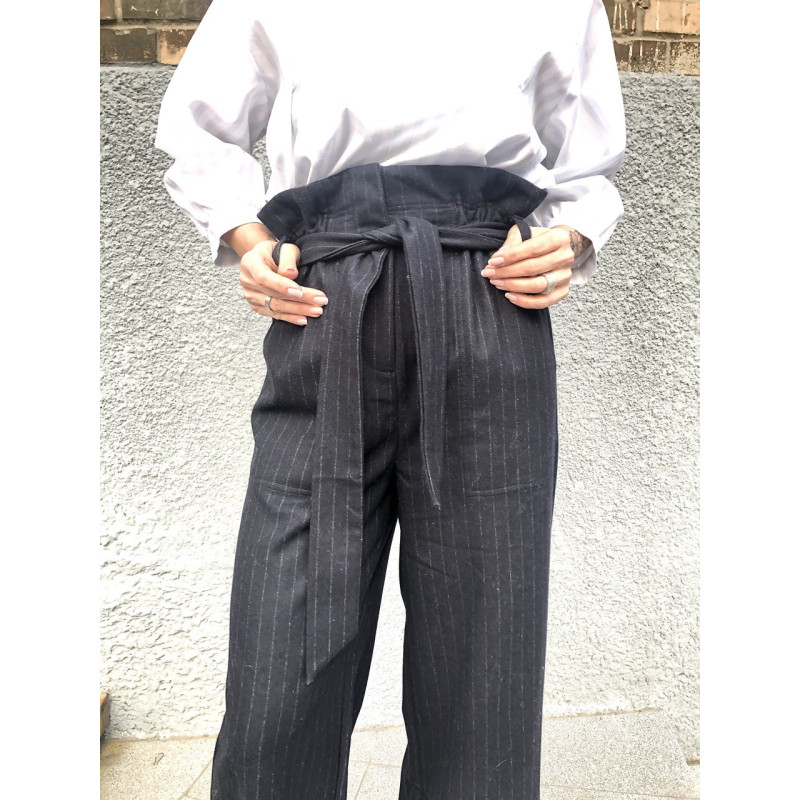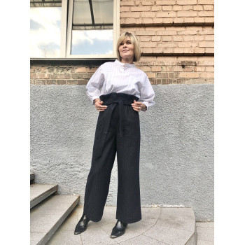 Штани чорні в полоску з кишенями у бічних швах. Довжина 104 см, талія 76-90 см, стегна 104 см
