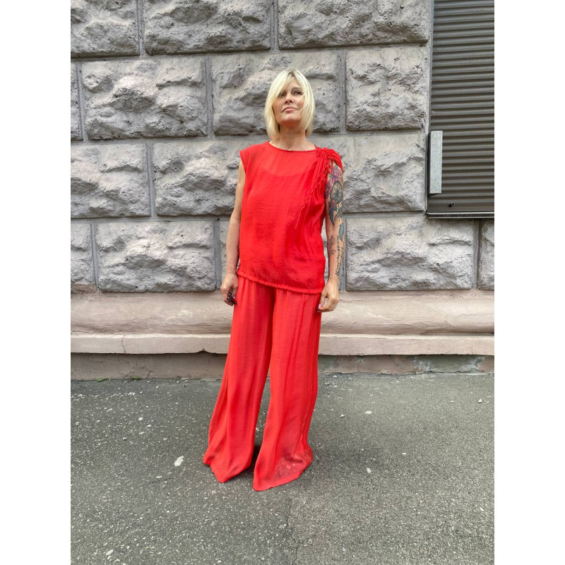 Широкі брюки палацо із віскози з евкаліптового волокна зовні дуже схожі на шовк .