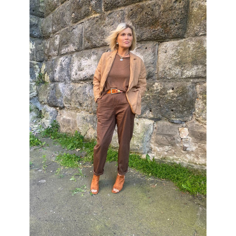 Штани капрі у дрібну смужку з косими кишенями та гумкою на поясі