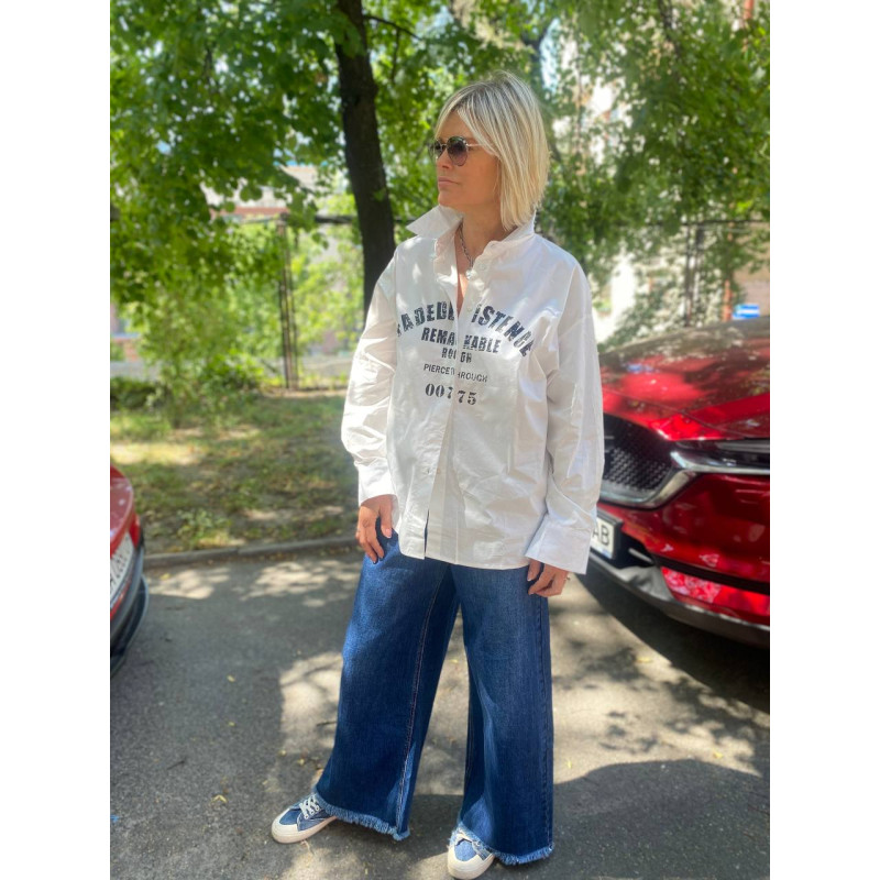 Сорочка з попліну з контрастним трафаретним принтом який робить соочку особливою. Довжина спереду укорочена.