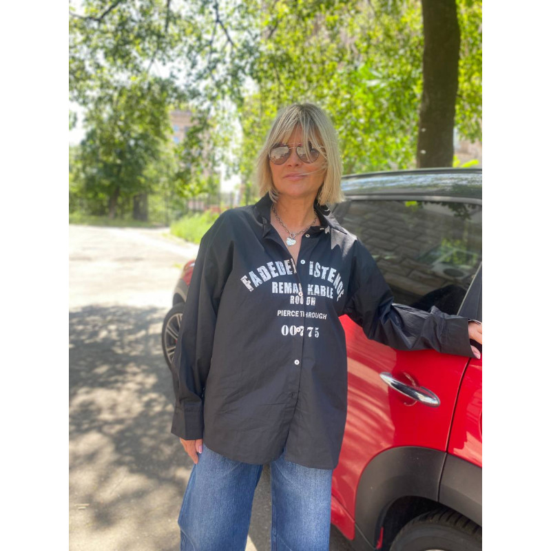 Сорочка з попліну з контрастним трафаретним принтом який робить соочку особливою. Довжина спереду укорочена.