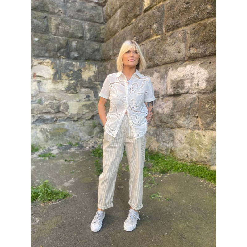 Бавовняна сорочка з коміром та малюнком шиття.