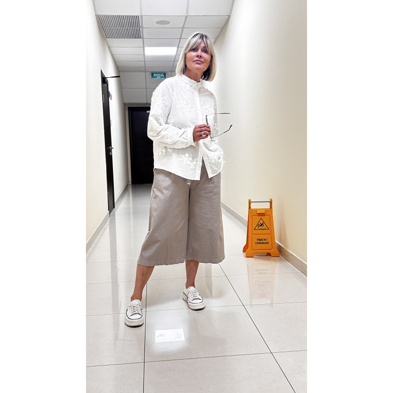Дивовижна та ніжна сорочка з коміром стійкою зі 100% бавовни, батиста з найніжнішою аплікацією букетів квітів.