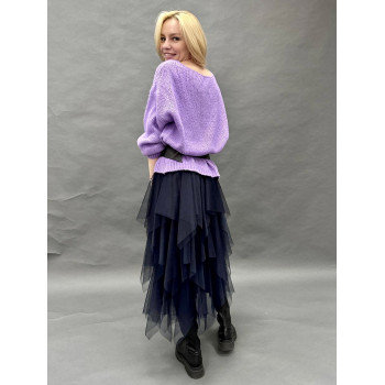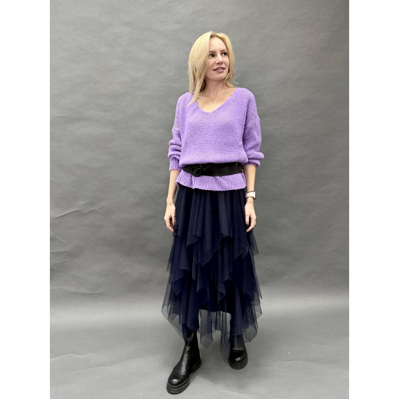 Спідниця з тюлі в косі волани з ефектом вареної тканини. Пояс на корсажі. Підкладка з віскози