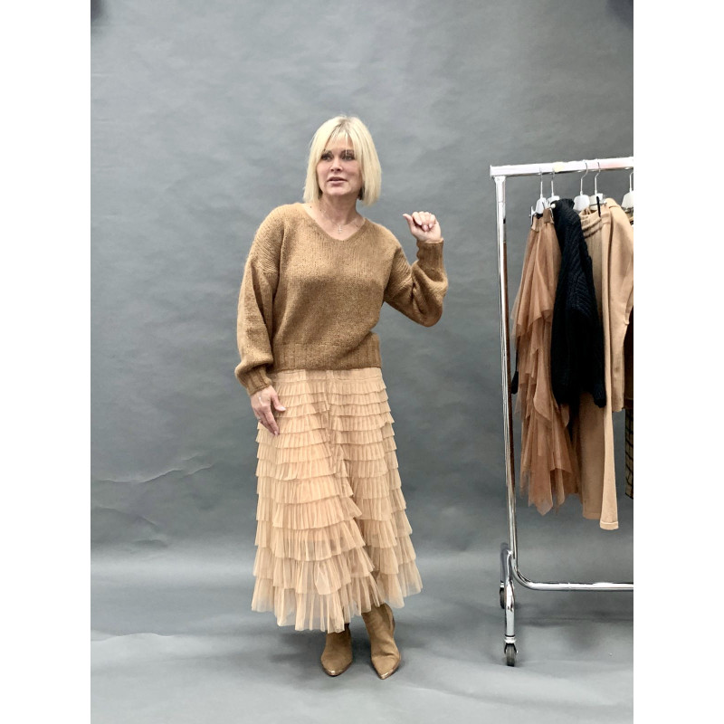СПІДНИЦЯ з тюлю на підкладці, пояс-гумка, прикрашена рядами оборочок різної ширини в стилі Есмеральди - це трендова спідниця сезону, яка сяє і в колекції Шанель цього сезону.