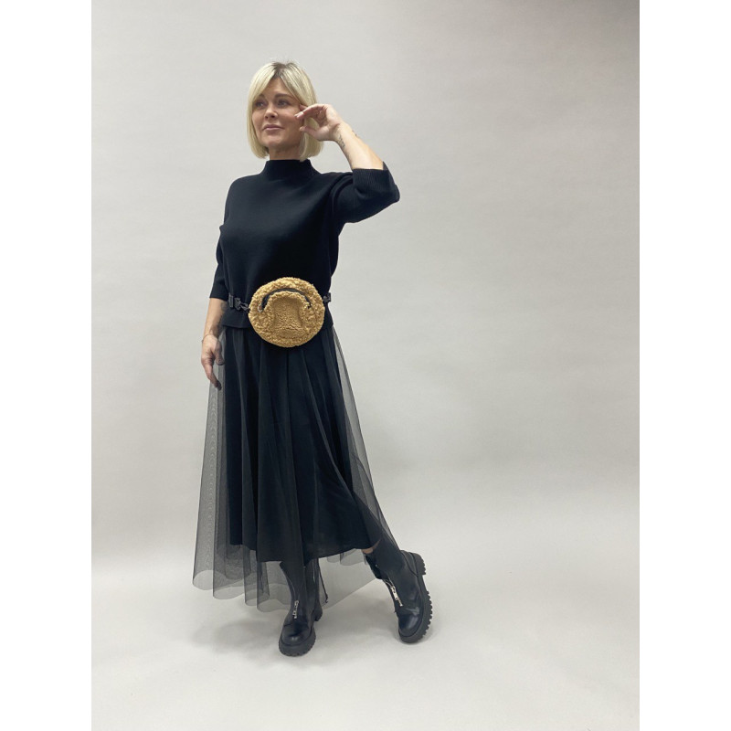 СПІДНИЦЯ з тюлю на підкладці з поясом на гумці, що ллється м'якими красивими фалдами, не додає обсягу, але надає вишуканості і контрасту образу. Особливе задоволення - це рідкісний та глибокий колір