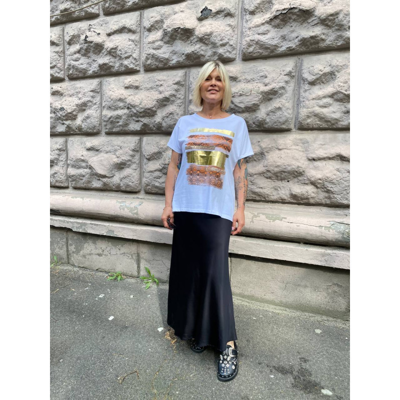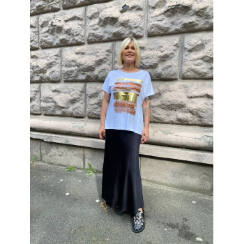 Вузька коса спідниця на корсажній гумці з атласої віскози