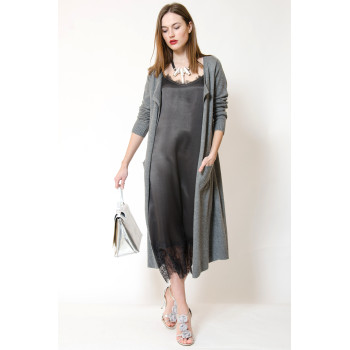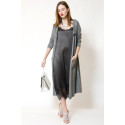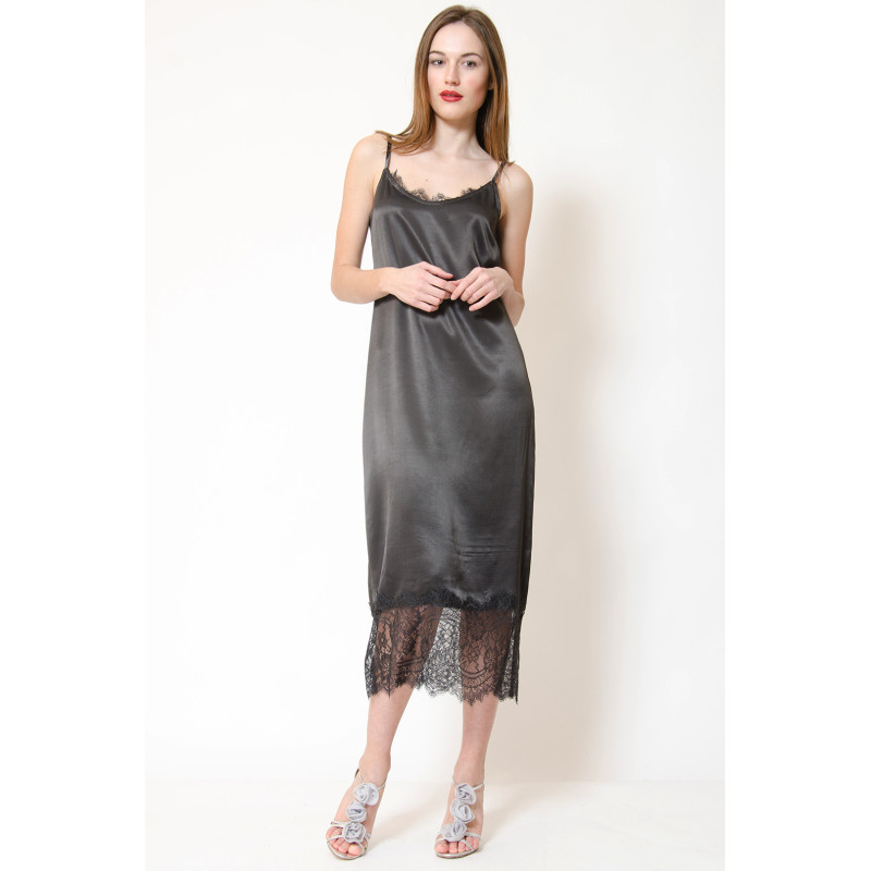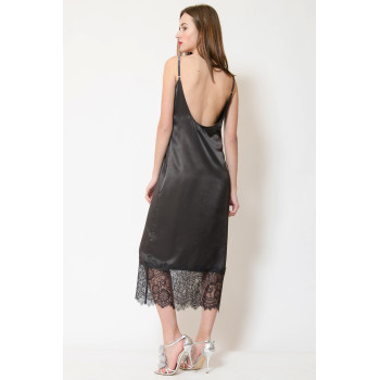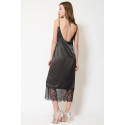 Сукня міді в стилі білизни, прямого силуету, декольте і поділ декоровані мереживом, на оксамитових бретелях, що регулюються.