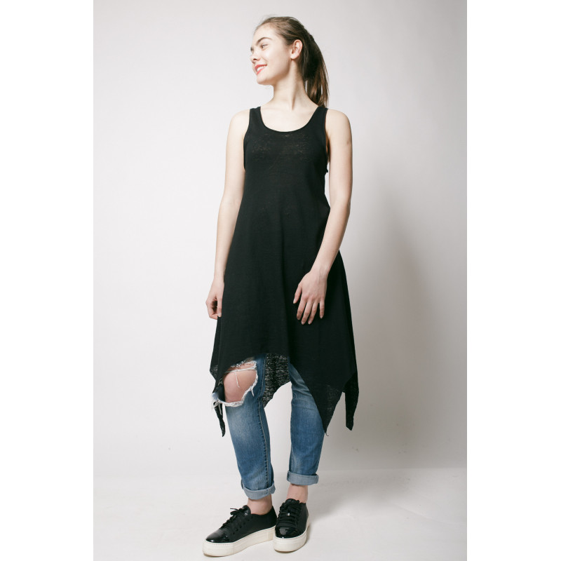 Сукня без рукава з фактурного трикотажу, А-силует, асиметричний поділ