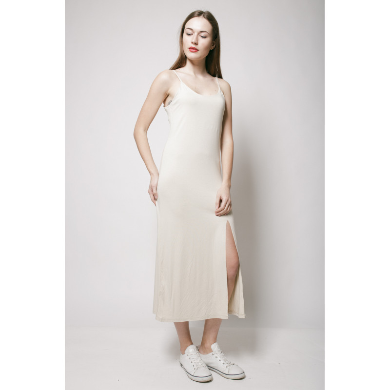 Сукня з трикотажу на тонких бретелях, поличка декорована розрізом
