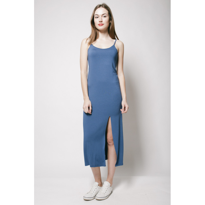 Сукня з трикотажу на тонких бретелях, поличка декорована розрізом