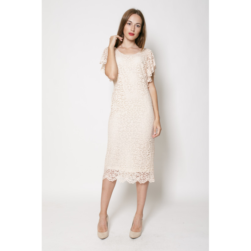 Сукня-міді з коротким рукавом-крильцем, приталений силует, застібка блискавка на відкритій спинці, з підкладкою