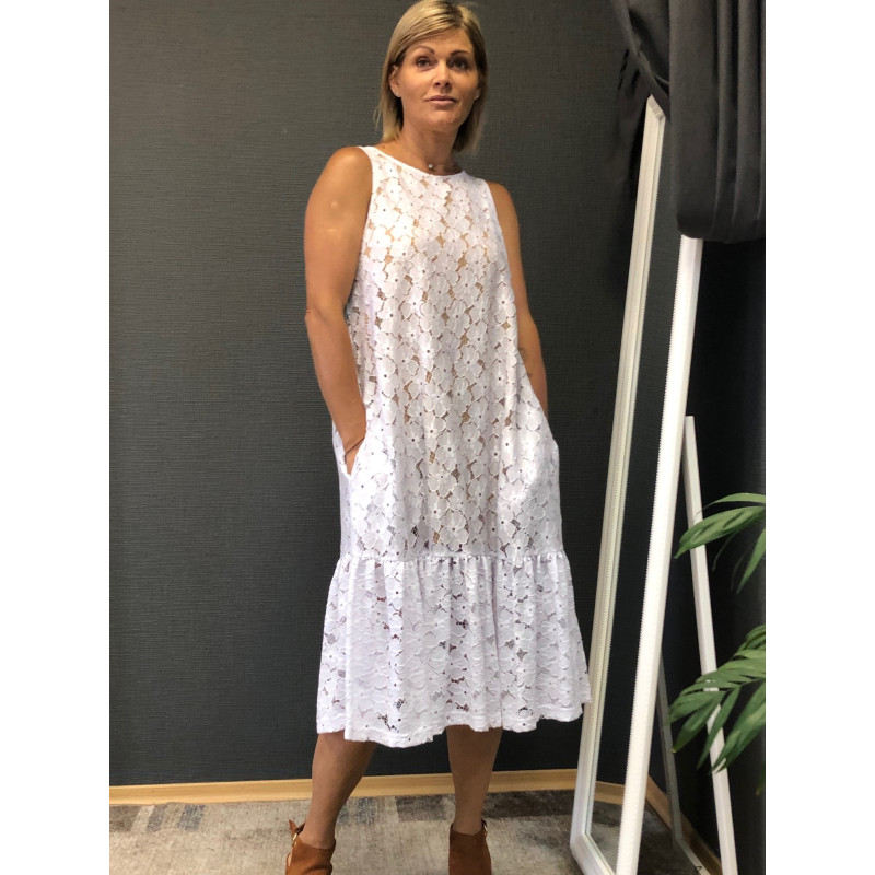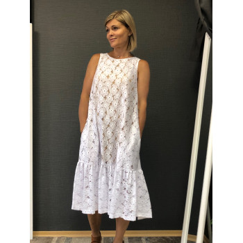 Сукня гіпюрова без рукавів внизу волан на бежевій підкладці