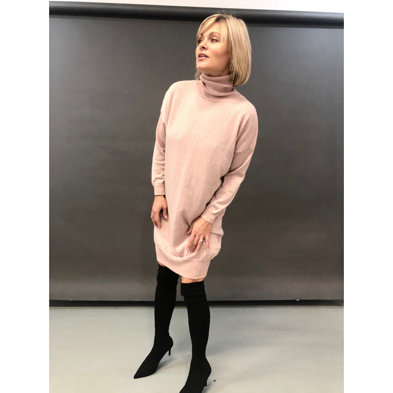 Сукня-гольф в'язана з люрексом. Довгий рукав з резинкою на манжеті, гумка також по нижньому краю виробу.