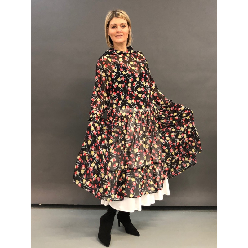 Сукня в стилі "бохо" вільного крою зі штучного шифону, відрізне нижче лінії талії, з призбираною оборкою по нижньому краю.
