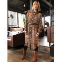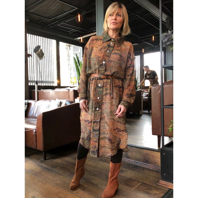 Сукня-сорочка на перламутрових гудзиках з класичним коміром та манжетами на рукавах, кишенями у бічних швах.