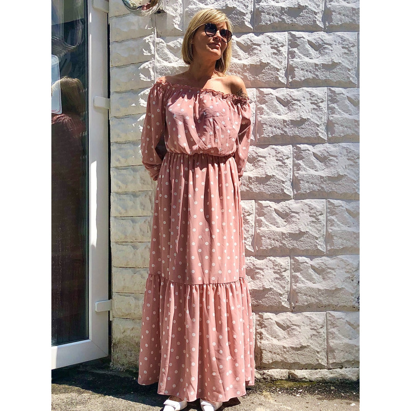 Сукня в горох із штучного крепдешину