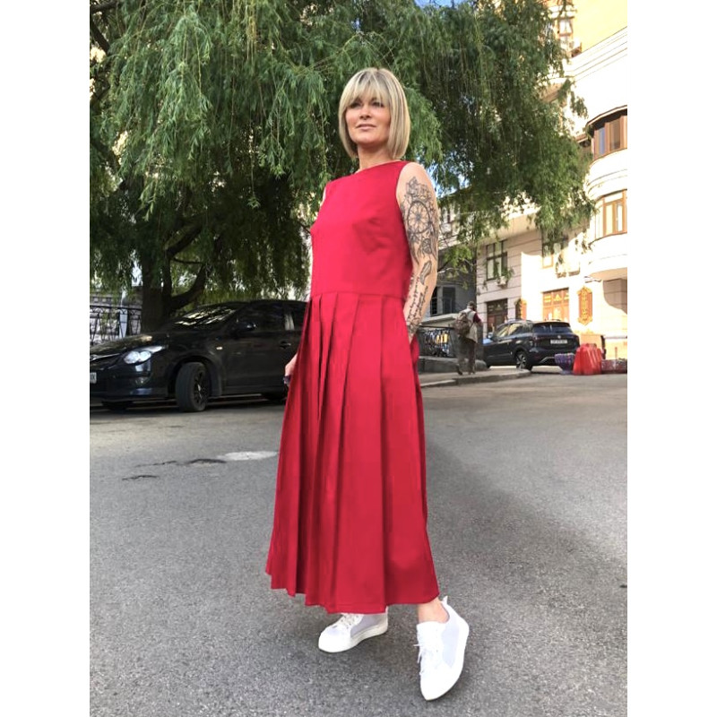 Сукня без рукава у великі склади на підкладці та кишенями у бічних швах