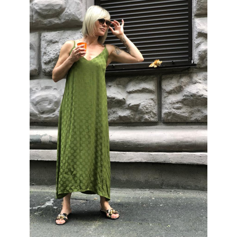 Довга сукня на регульованих бретелях, силует трапеція