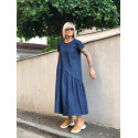 Сукня силует трапеції з легкої бавовни денім. Спідниця по діагоналі від стегна до виточки злегка прилаштована. У бічних швах кишені
