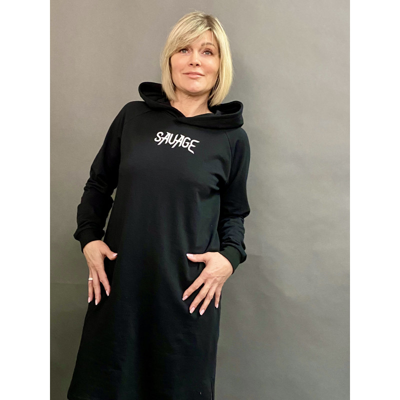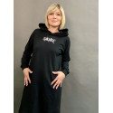 Сукня чорна з капюшоном на довгий рукав та надписом на грудях.