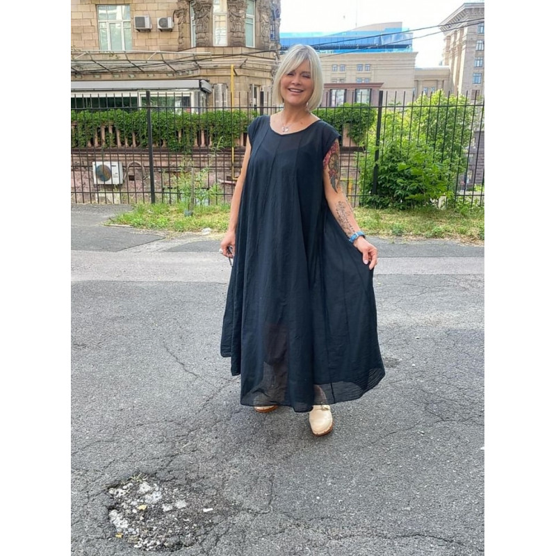 Легка і незвичайна сукня на підкладці .Сукня з 6 клинів має силуєт балона лінія плеча злегка приспущена та з кишенями у бічних швах
