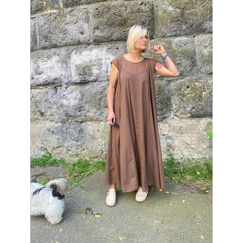 Легка і незвичайна сукня на підкладці .Сукня з 6 клинів має силуєт балона лінія плеча злегка приспущена та з кишенями у бічних швах