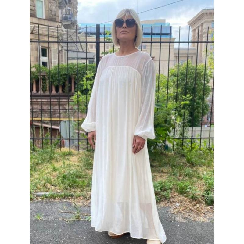 Просто приголомшлива красива сукня з віскозного евкаліпта.Прозорі кокетка та рукаванадають образу ніжного нескінченно жіночного флеру. Сукня на віскозній підкладці